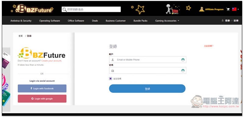 之前有買過 BzFuture 的人,可直接登入,還沒的人按右上角免費註冊: