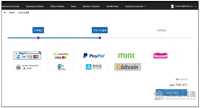 付款方式非常多選擇,信用卡、PayPal、支付寶、bitcoin 等等都行: