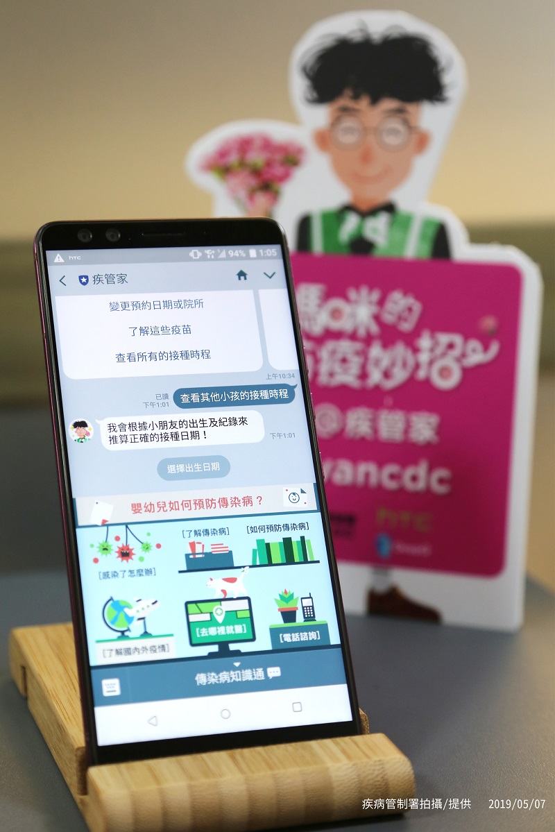 疾管署官方Line好友帳號「疾管家」,是由疾管署於2017年與HTC合作開發的,除了原本的流感疫苗接種服務功能;2018年推出的2.0版本,擴充傳染病諮詢功能,如瞭解登革熱預防方法、腸病毒症狀、查詢鄰近醫療院所等;出國前也可以透過疾管家了解當地疫情以及防疫資訊,例如出國前是否需要接種疫苗或預防性投藥、查詢鄰近旅遊醫學門診。
