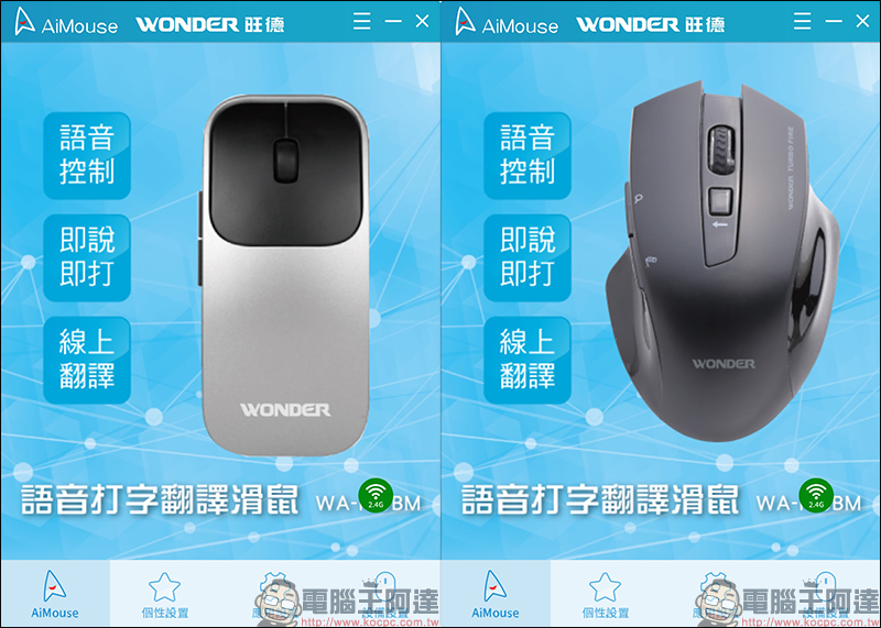 市面上的滑鼠種類相當繁多,今天要為大家開箱的兩款 WONDER 旺德 AI無線語音打字翻譯滑鼠 ,能滿足不同使用者對於滑鼠的需求。它不僅是款無線滑鼠,也支援語音輸入(含標點符號)、語音搜尋和語音翻譯等智慧功能,用戶只要說出想輸入的文字、想搜索的內容都能讓它協助提升辦公效率。無論是電腦工作者、商務人士或有與外國客戶聯繫都相當推薦。