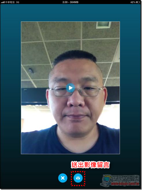 錄製完畢後,如果滿意的話再執行「傳送影像訊息」即可,這樣不管對方有沒有在線上,只要登入Skype就可以看到您留下的影像留言: