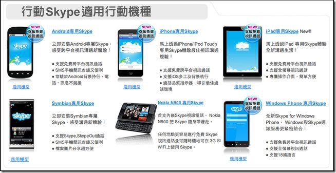 電腦端可以錄製Skype影像留言,行動裝置當然也可以,甚至可以說更加方便!Skype支援的行動裝置類型相當齊全,差不多主流系統都有支援視訊通話,阿達自己則是實測了Android版、iPhone與iPad版本的行動版Skype: