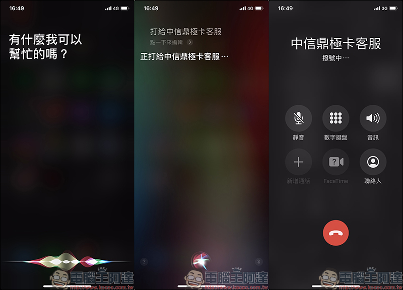 最後一招則是直接使用 Siri 語音助理來幫忙撥打電話囉!用戶只需要在螢幕喚醒狀態下呼喊「嘿 Siri 打給(某某某)」,接著 Siri 就會替用戶播打電話給聯絡人中的指定對象。此外,除了透過 iPhone 喚醒語音助理播打電話,其他 Apple 周邊如 AirPods 、 Apple Watch 甚至是 HomePod 也支援 Siri 播打電話功能。