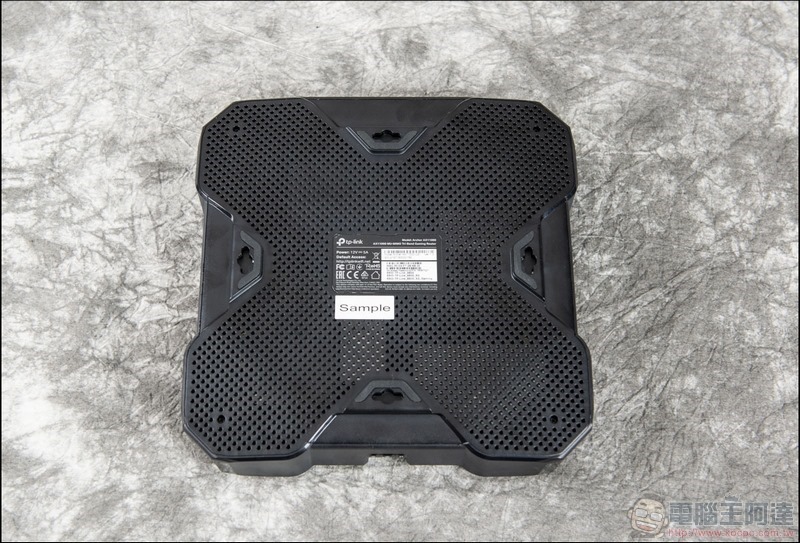 在底部可以發現TP-Link Archer AX11000由於三頻的關係,電源的配置也向上提升到了12V、5A: