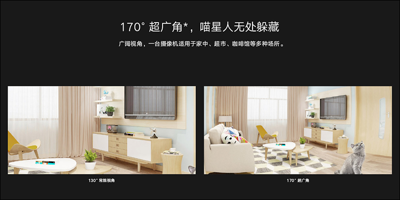 作為監控用的智慧攝影機,能拍攝更廣的視角也特別重要,小米智慧攝影機(標準版)也支援 170° 的超廣角,能拍攝更廣的視角範圍:
