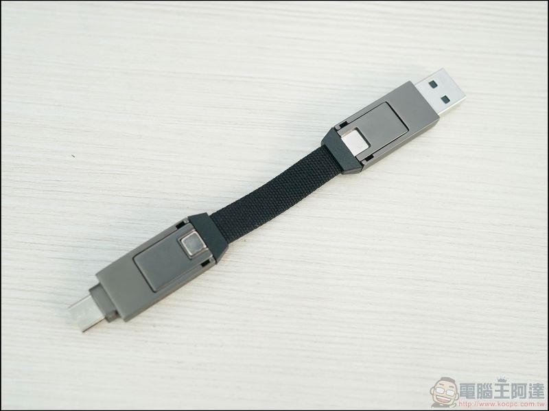 看似普通的傳輸線實際上大有玄機!兩端的金屬接頭只要一拉就可將內藏的機構「變形」延伸出來,接著來看有哪些隱藏功能:
