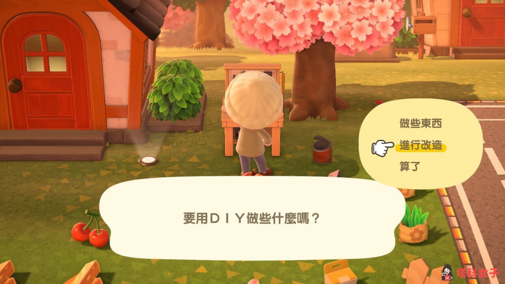 要將家具裝飾成自己喜歡的圖案,必須使用「改造工具組」,你可以在「Nook 商店」裡的櫃子買到。