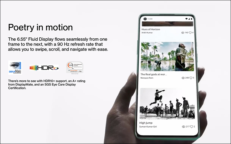 另外, OnePlus 也針對偏好小尺寸手機的使用者推出了 OnePlus 8 。OnePlus 8 配備 6.55 吋 FHD+(2400*1080)解析度 AMOLED 螢幕,支援 90Hz 螢幕更新率。螢幕也支援 HDR10+ 顯示,與 OnePlus 8 Pro 一樣獲得 DisplayMate 最高 A+ 評比。