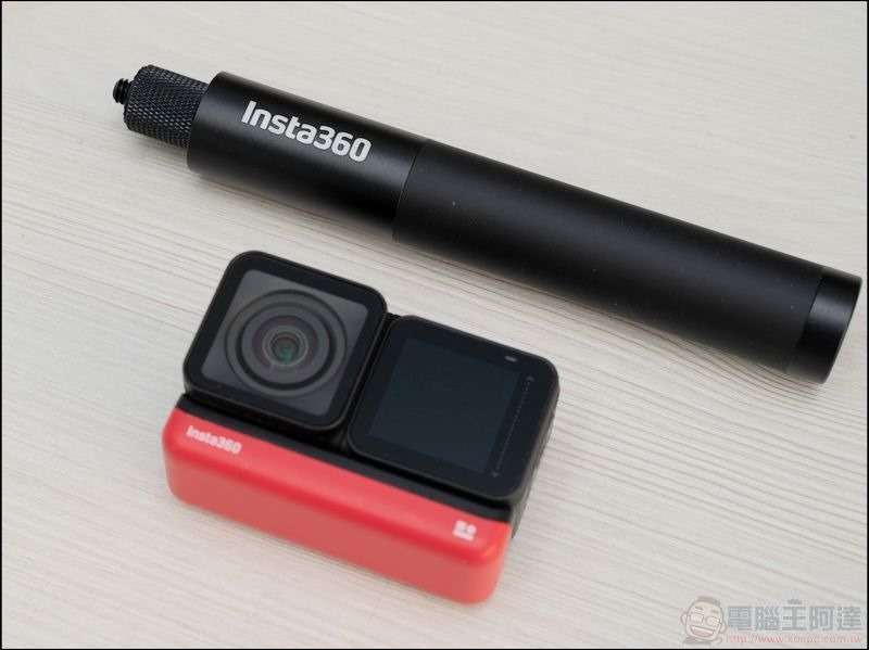 「隱形自拍桿」其實就是搭配 One R 後置選項裡面的隱形自拍桿功能的專用配件,可在輸出影片時透過演算法讓自拍杆消失,官方號稱用這組隱形效果更好(我覺得都有效果就是),縮短時僅有28公分: