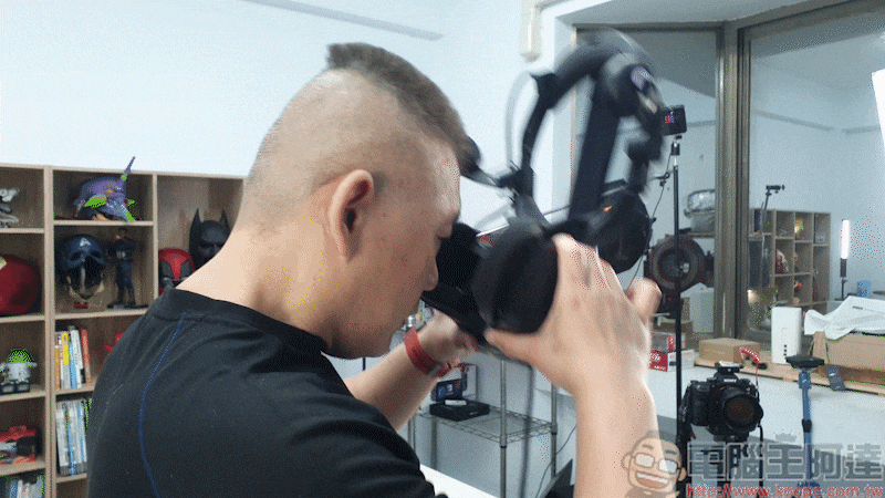 而 Cosmos Elite 最棒的就是他的上掀式設計,除了配戴快速,臨時要由 VR 回到現實世界只要上掀就搞定,連頭戴裝置都不用取下: