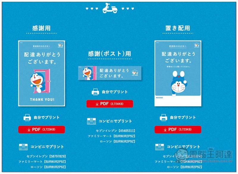 再往下滑左邊是提供給餐廳和外送員的免費素材,右邊則是藤子·F·不二雄博物館的實景桌布: