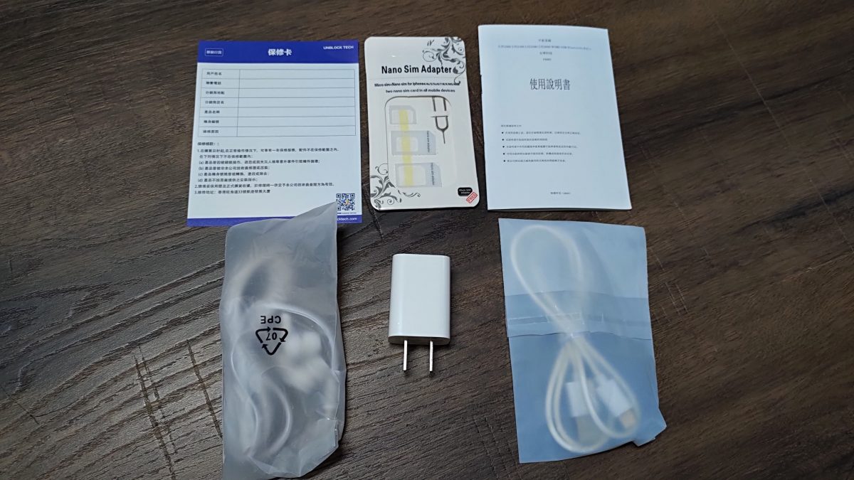 配件有3.5mm耳機,充電器,傳輸線,各種大小的sim卡轉換卡,及保固卡與使用說明書,