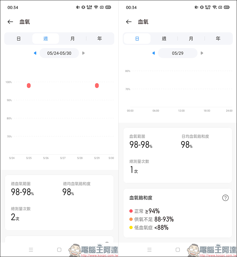 至於長期的血氧濃度偵測數據,也能在 realme Link App 檢視: