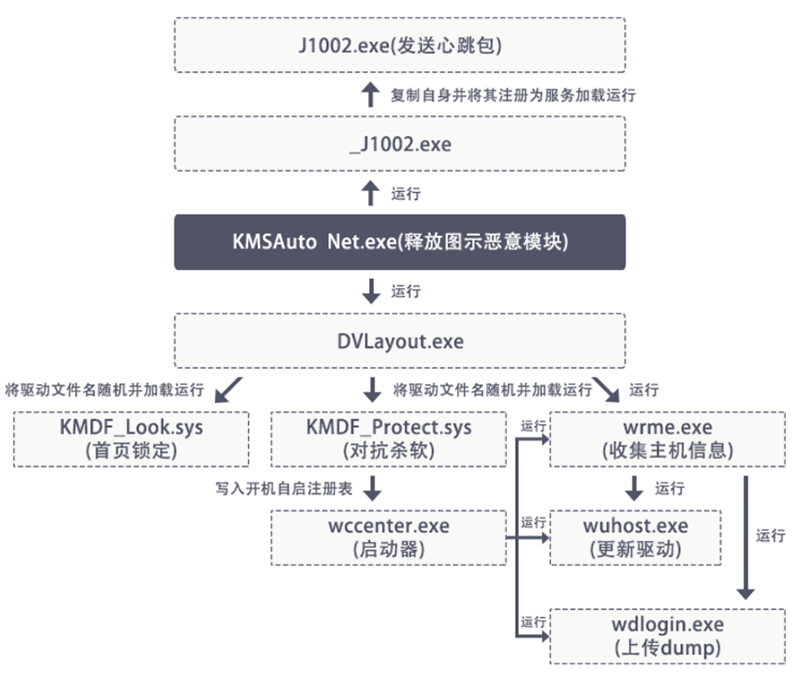 下圖是火線安全整理出的病毒惡意行為流程圖: