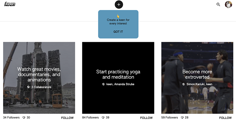 認真說,相信大家看到 Google 又玩社群網站,而且又與 G+ 之前對決 Facebook 與 Twitter 很像,看似跟 Pinterest 與 Pocket 等服務類似應該會覺得有點打呵欠。不過個人覺得這個用於搜集興趣的服務,其實還蠻適合 Google 自己的老本行的。是的,它一樣會要你像 Pinterest 那樣建立自己的興趣與內容搜集板,但 Google 的這個實驗計畫將會要要你在創建自己的 Keen 時,輸入一些關於此興趣的關鍵字,其實也不失為搜集自己興趣內容的好工具。