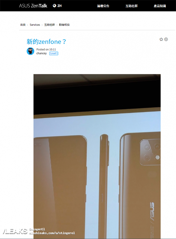 目前唯一就年初爆料大神 Slashleaks 刊登的這張疑似 ZenFone 7 照片,放棄了 ZenFone 6 的翻轉鏡頭,不過因為時間有一點久,因此可信度個人覺得不高: