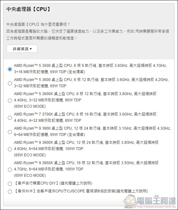 在官方頁面上,可以發現Ryzen 3000系列全系列處理器都可以自由搭配,這意味著可以在筆電上使用16C/32T的AMD Ryzen™ 9 3950X,真的是猛到爆,而且最低由37450就能入手,處理器還可以等降價後有預算再升級。