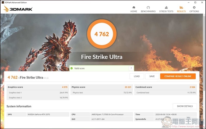 最後則是針對4K解析度的Fire Strike Ultra測試,MX-756的分數為4762。