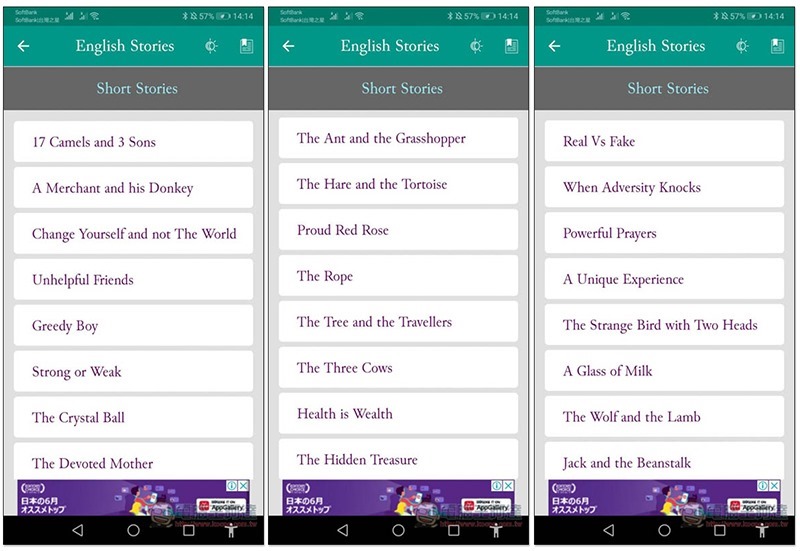 想加強與提升英文單字能力,除了背之外,大量閱讀也非常重要,因此很多人應該都會看國外新聞、雜誌之類,而有時候一定會有點膩,特別是你本來就不喜歡看新聞,或使用的單字對你來說有點太難,那就可以考慮閱讀有趣的故事書。如果你是拿 Android 手機,Google Play 中就有這麼一款 1000 English Stories 免費 App,收錄上千本免費英文故事書,從適合兒童、學生到大人都有,甚至還有不少床邊故事,想要加強小孩英文的人,也可以唸這個給他們聽。