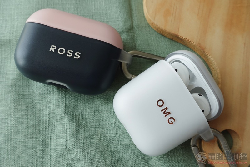 這次我們電腦王阿達團隊也搶在預購出貨前,簡單動手玩試用犀牛盾的 AirPods 保護殼,而且還是 AirPods 與 AirPods Pro 全色系 — 也有客製刻字的示範版本(有金色與銀色字樣可選,不過只能支援英文字),正式開賣之後犀牛盾接著也會有圖樣設計的版本可以選購。