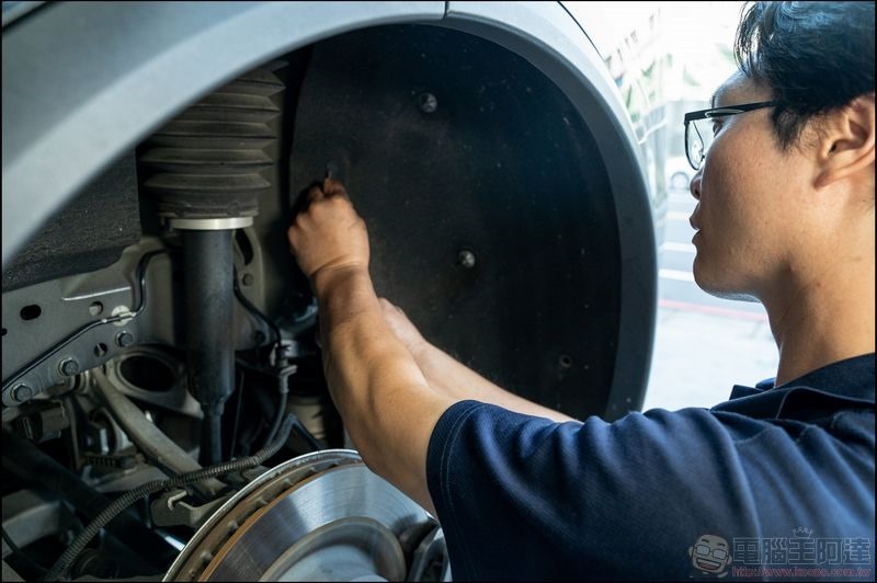 跑完一圈後回到 Wow!好站準備開始施工,先將車輛頂起。在這邊要先跟有意作相關改裝的特斯拉車主先耳提面命一下,特斯拉對車輛的保固其實還蠻龜毛的,你如果進行與「電池」、「電機」、「電線」等方面相關的改造,很可能會造成最重要的電子系統失去保固!!這點非常重要!但對於換輪胎、改輪框、輪胎定位(建議所有車主領車後要自己做,特斯拉出廠沒在定位的)、貼膜、板金、隔音工程…等不動到電機的改裝倒是沒有太多限制,輪拱隔音改善這部分沒什麼問題,但如果連車門都要做隔音的話最好先問問原廠: