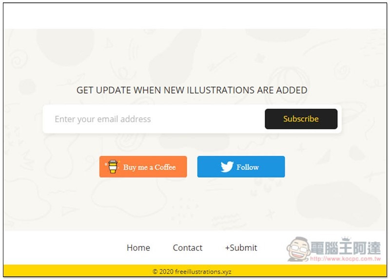 如果未來網路上有新的向量圖素材出現,這網站也會持續更新,有需要的人可以填入你的 E-Mail 訂閱,來接收最新通知: