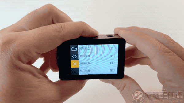 其實 Mokacam 團隊早就貼心想到了操作方式,透過按鈕其實也是可以瀏覽設定選單沒問題,相對過於倚賴觸控的其他運動相機,可以提供更精準的操控: