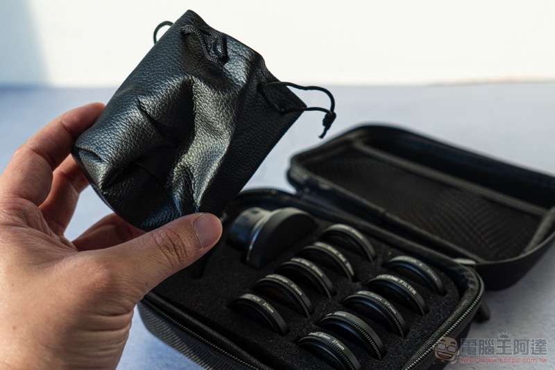 開箱的壓軸應該也是大家最期待的鏡頭 12 件鏡頭套組吧?Mokacam 還貼心附贈了鏡頭皮套: