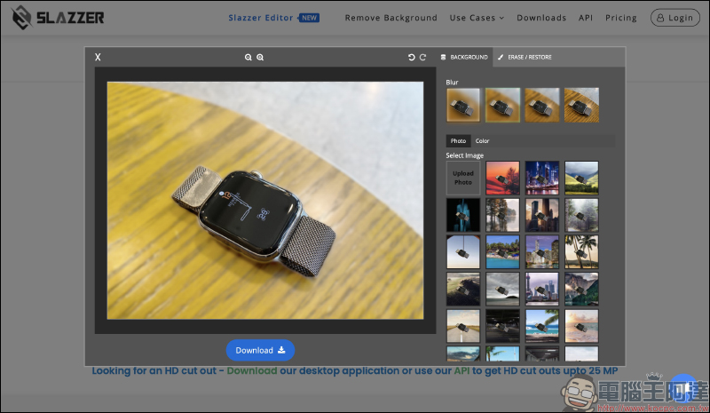 除了基本的圖片去背, SLAZZER 也可以設定模糊背景或以其他圖檔來替換背景: