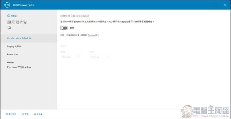 在顯示器控制項目下,另外又細分了許多貼心功能,Comfort Mode Scheduler是可以直接設定何時要開啟低藍光模式。