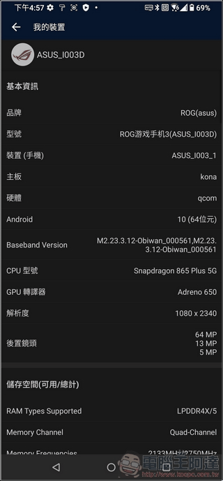 錄影部分 ROG Phone 3 支援最高 8K UHD (7680 x 4320)畫質解析度錄影與電子防手震功能: