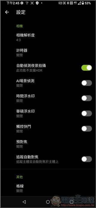 相機設定介面,主鏡頭也有AI智慧場景辨識功能: