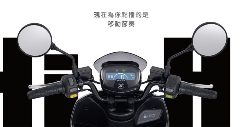 搭配有小風鏡的裸把下方可以看到車輛啟動的感應區,代表 eReady Fun 的啟動方式將需使用感應卡片。車身造型圓滾滾的車頭搭配上下排列的魚眼頭燈,前段看起來有點像是 Choi Nori 蛋蛋車那樣的可愛;不過一旦將視線移至車尾,便又會覺得他們所謂的星辰式 LED 尾燈有點帥氣的感覺(算混搭風?)。