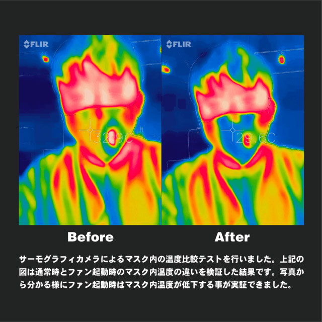 口罩上所配備的風扇為活動可拆卸,好讓你能夠輕鬆以中性洗劑洗滌口罩本體;在風扇通往口罩內部的地方還配有可替換式的圓形濾網。避免髒污等從風扇中趁隙而入。而這款口罩為了保持輕量化與可洗滌等能力並不是採充電式設計,它的電力來源必須透過外接行動電源來供給,連接電力的線材上還配置有切換開關,讓你能夠自由控制風扇,將口罩內堆積的濕氣與熱空泣藉由濾網排出。風扇本體還可防潑水,就算是下雨天配戴也不必擔心雨水會傷害風扇。