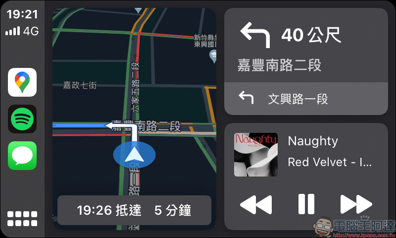 就像前段提到的,當啟用勿擾模式(開車勿擾模式)後, CarPlay 主畫面的勿擾模式圖示可方便用戶辨別是否有開啟這項功能,在開啟期間也就不會有訊息通知。