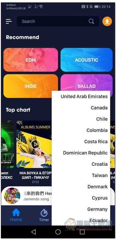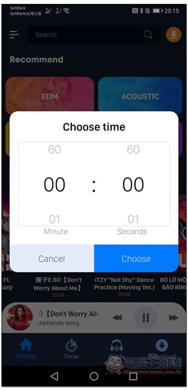 也提供定時器功能,設定好後只要時間一到,音樂就會暫停播放,睡覺聽歌非常好用: