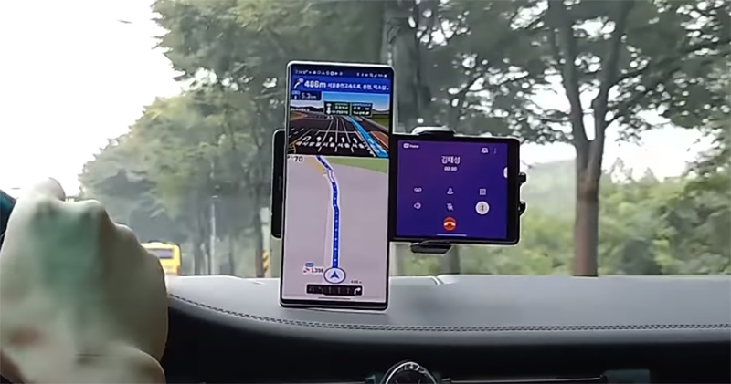 在今年 5 月間,韓國媒體就已經爆料過 LG 開發一款代號「Wing」的可旋轉螢幕手機,現在國外媒體更放出了這款新型態雙螢幕手機的實機影片,似乎已經是確定版本的樣貌,同時也展示了旋轉雙螢幕在行車時多工運用的實際場景,不失為車上未裝車機的輔助解決方案。