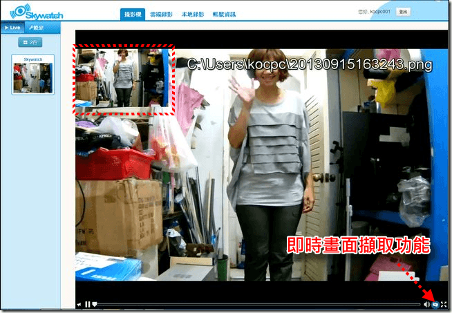 在畫面的右下角可關閉 Skywatch ProCam 遠端側錄聲音播放(影片還是有聲音)、也可以即時擷取畫面或全螢幕播放,相當方便: