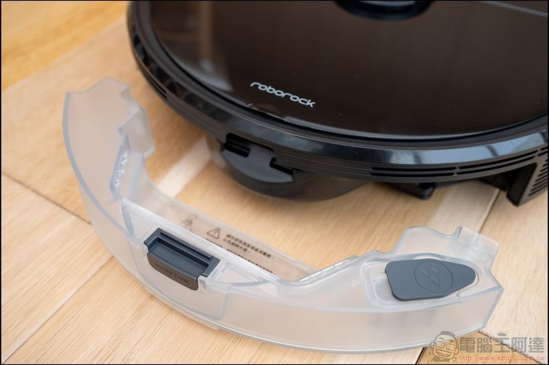 只要按壓後方的開關就可取下電控水箱裝水,完整繼承了另一款 S5 Max 的優點,當然也有 300G 仿真人加壓拖地的功能: