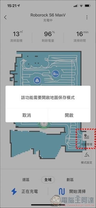 在App裡面也可以看到整個打掃的過程,當S6 MaxV 偵測到障礙物後會在地圖上顯示對應圖案: