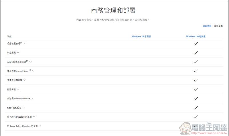 而Windows 10 Pro與家用版最大差異,即是在安全性與商務管理與部署上。
