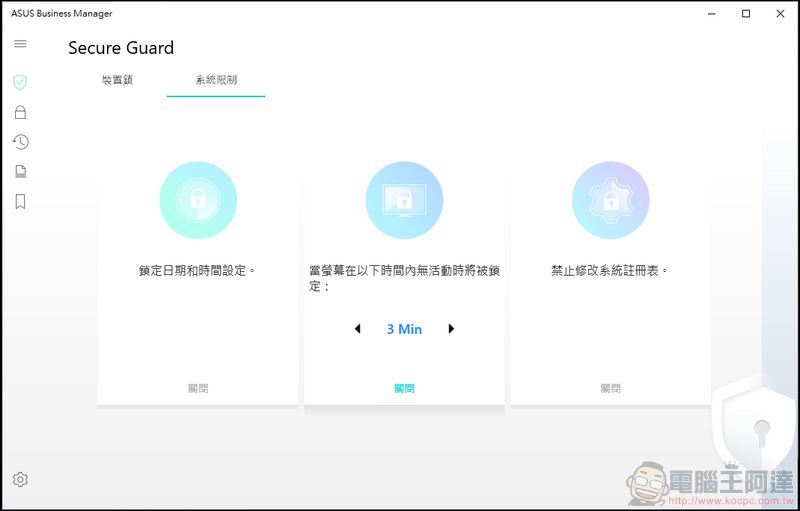 接著是系統限制部分,可以鎖定日期、鎖定螢幕以及禁止修改註冊表。