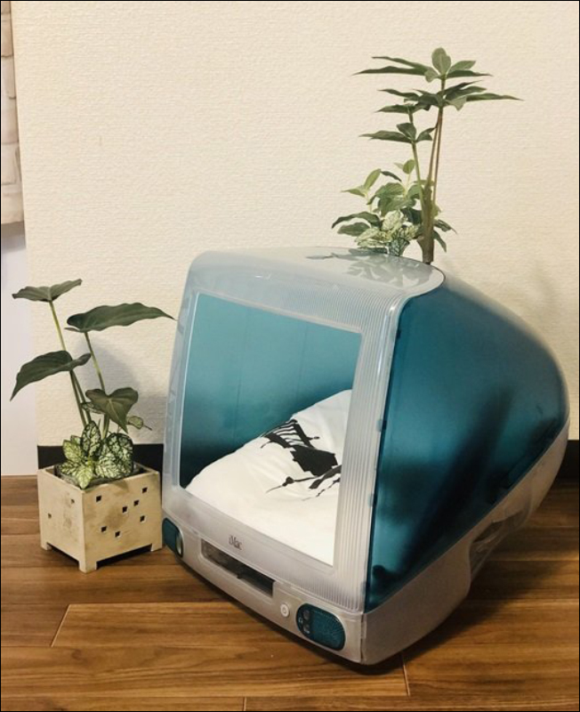 一名日本網友 クロイヌ 在個因緣際會下取得了一部廢棄的 Apple iMac G3 電腦,還是當年 iMac G3 眾多配色中最為經典的邦迪藍。這名網友將 iMac G3 拆開並指取用外殼部分,成為貓咪新家的外觀。