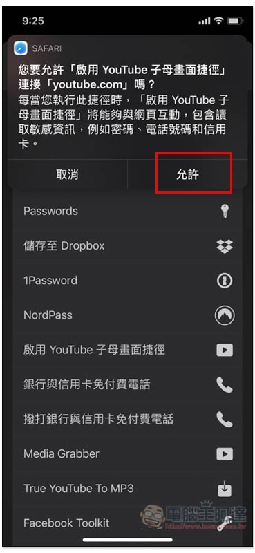 - 捷徑腳本名稱:啟用 YouTube 子母畫面