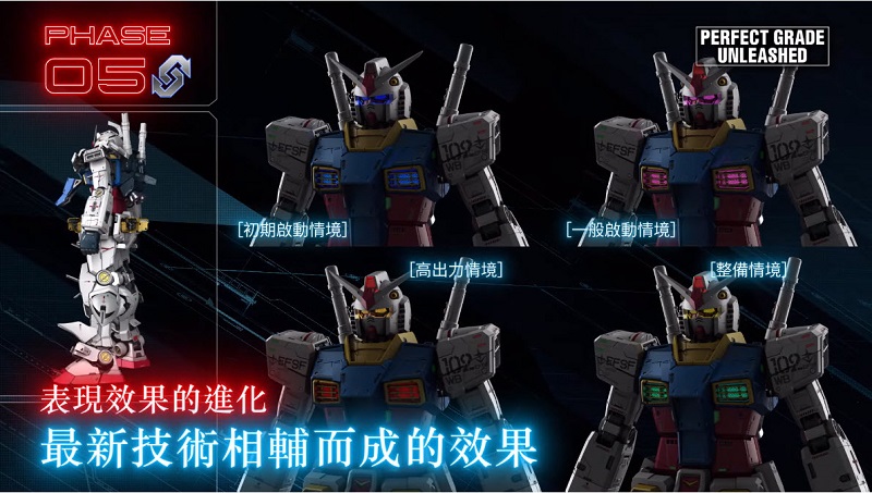 而這款「PG UNLEASHED 1/60 RX-78-2 鋼彈」,官方提作為一款累積鋼彈模型40年以來的研究與進化,以「PERFECT GRADE UNLEASHED(PG UNLEASHED)」之名,結合可動、變形、輕易組裝、發光機構、極致細節等技術於一身。