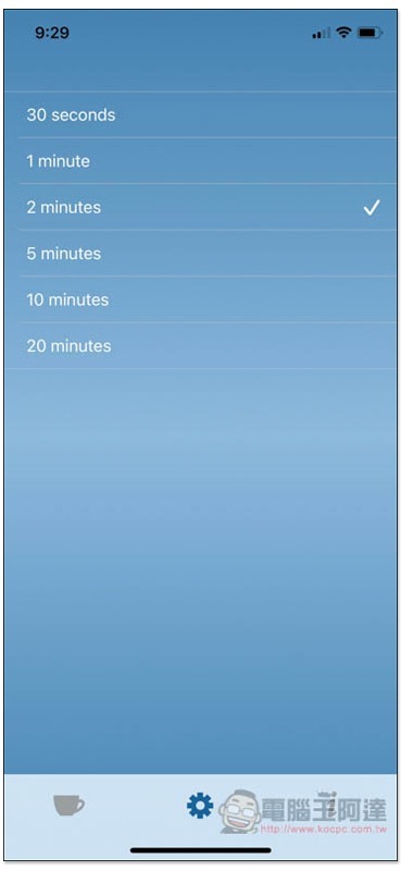 小睡鬧鐘的使用方式也一樣,切換 Nap 模式後,點一下畫面中的咖啡杯,就會開始計時: