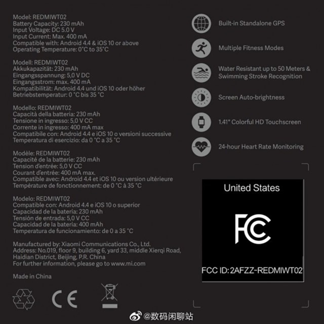 另外還可以注意到,左側的 Model 型號寫著 REDMIWT02,因此名字部分可能不會叫小米手錶 Lite,而是用 Redmi 品牌來推出這款手錶(Redmi Watch?),猜測可能是因為比較低階,價格也便宜的關係。小米手錶的建議售價為 1,299 人民幣,約台幣 5,700 元,不知道可以便宜多少。