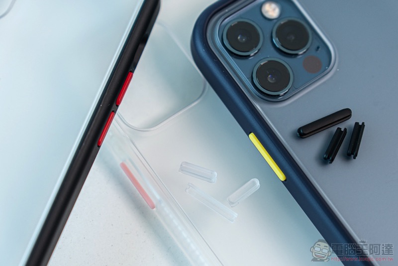 可別笑說誰會想要同一款殼買這麼多個。實際試用 hoda 針對不同顏色的柔石霧面殼提供了不同的跳色按鈕。搭起來還真的都各有不同的個性,真的會讓人想要依照每天的心情搭配安裝呢:
