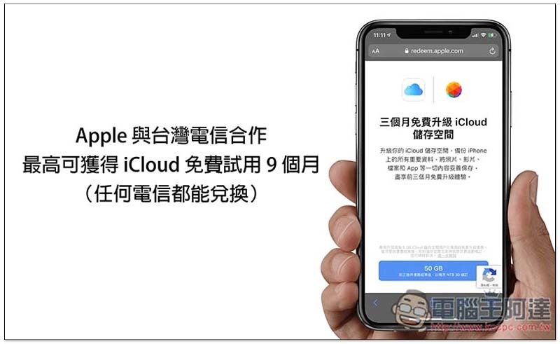 不過免費版的 5GB 真有點少,很容易就滿,如果你不曾申請過 iCloud,那最近有一個非常好的消息,Apple 與台灣三大電信合作,各提供免費 3 個月的 50GB 試用,而且更棒的事,Apple 不會檢查你是哪家電信公司,意味著無論你是申請台灣大哥大、遠傳、台灣之星、亞太還是其他等都行,三個活動頁面還能重複兌換,最高可疊加到 9 個月,下面就實測給你看。