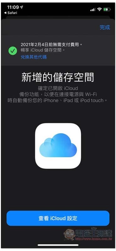 已經有訂閱 iCloud 的人,兌換時會跳出這訊息: